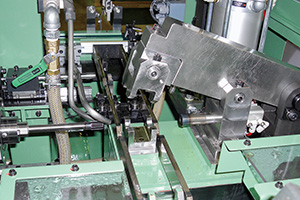 自動切削加工機 自動タップ加工機 KT/RT 特徴 タップユニットはサーボモータ式/汎用三相モータ式から選択 サーボ式では電子同期により段替不要 オプションでネジゲージ検査機能を追加可能 加工内容 タップ加工(M6~M24)(転造タップ、切削タップ可) ツールユニット 京和製タッピングユニット(空圧式/サーボ式) ワーク搬送方式 トランスファー式(標準)/インデックス式 処理能力 4~10個/分 本体標準価格 ¥8,500,000~(KT)、¥6,800,000~(RT) 機械内部