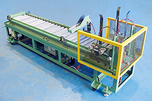 自動供給装置 箱順送機 JHS 特徴 「段バラシ+段積」、「段バラシのみ」の2仕様から選択 様々な箱サイズに対応(C箱標準) 制御を親機で行い低コスト化も可能 最大積載箱数 10箱(段バラシ側)、5箱(段積側) 箱替時間 5~10秒/箱 本体標準価格 ¥900,000~ 製作例